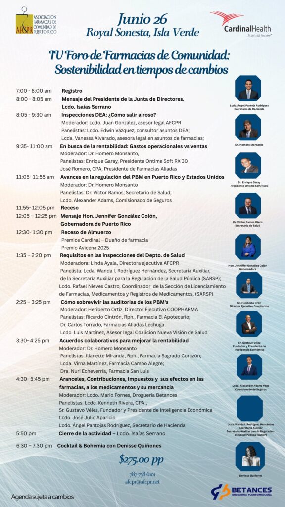 La Asociación Farmacias de Comunidad de Puerto Rico. Tu Foro de Farmacias de Comunidad: Sostenible en tiempos de cambios.